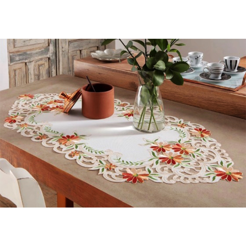 Caminho para Mesa Jolitex Bordado Florença 0,40cmx 0.90m Laranja