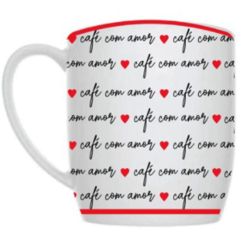 Caneca De Porcelana Allmix Estampa Urban Love 360 ML Cafe Com Amor Branca