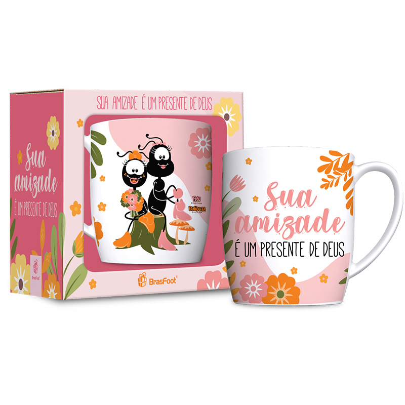 Caneca Porcelana BrasFoot Smilinguido 360 ML Sua Amizade e Um Presente de Deus Urban Branco