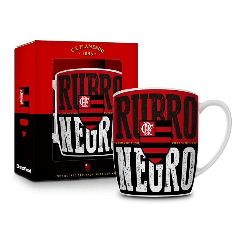Caneca Porcelana Premium BrasFoot Flamengo 300ML Urban Licenciada Branco
