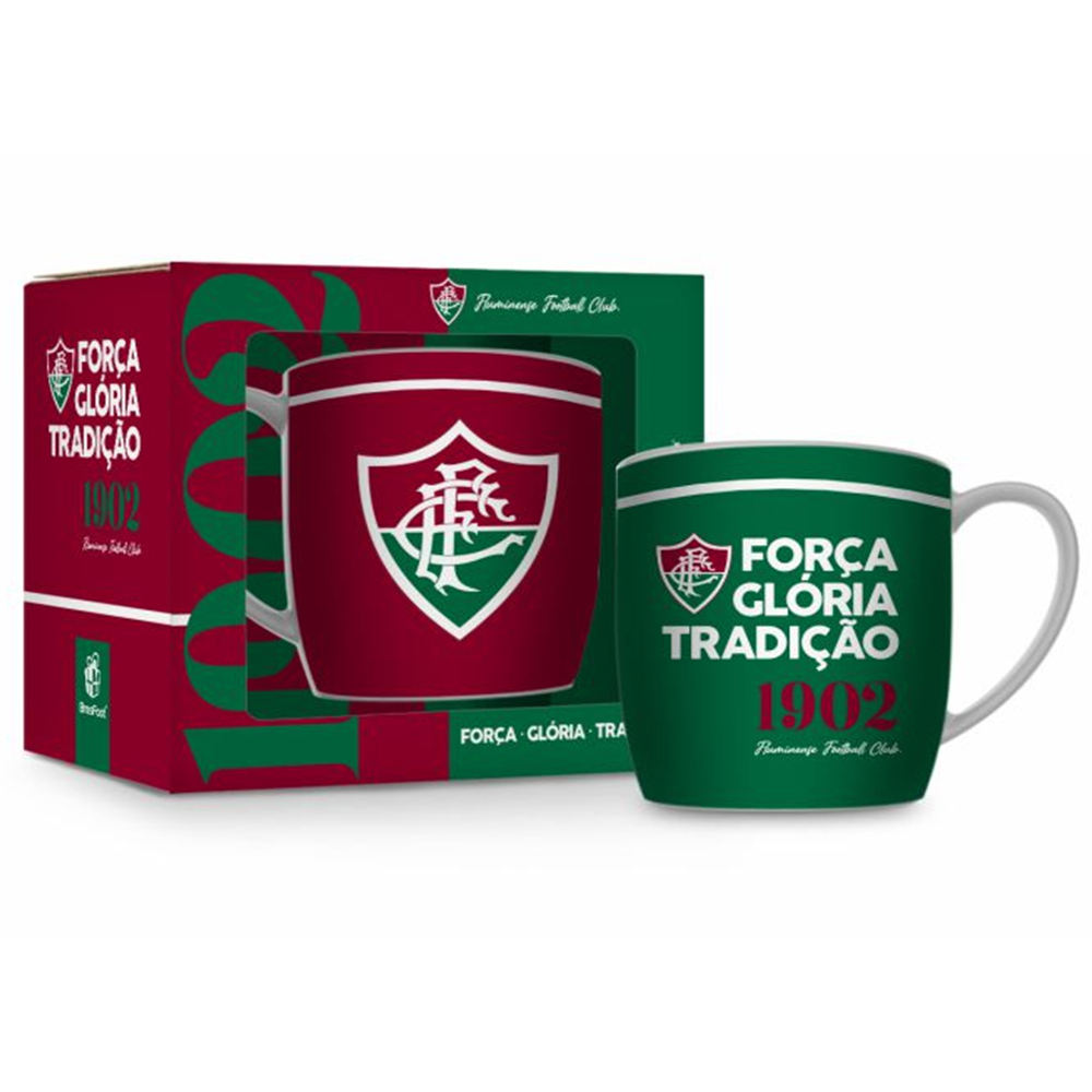 Caneca Porcelana Premium BrasFoot Fluminense 01 300 ML Urban Licenciada Branco
