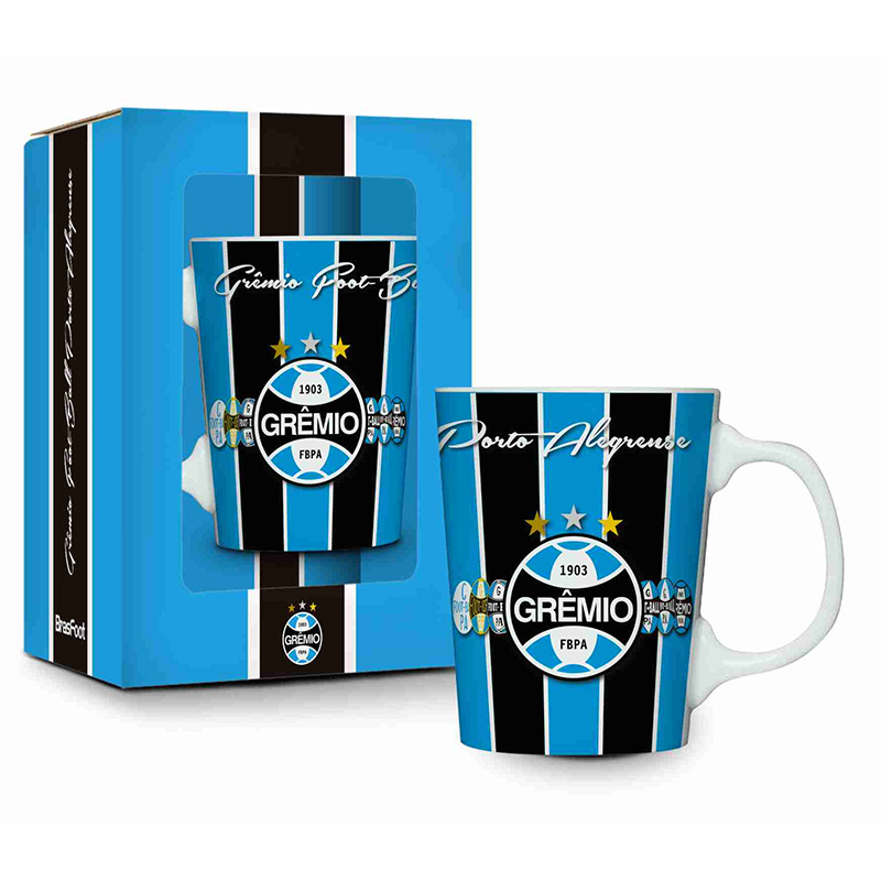 Caneca Porcelana Premium BrasFoot Grêmio 280 ML Licenciada Branco