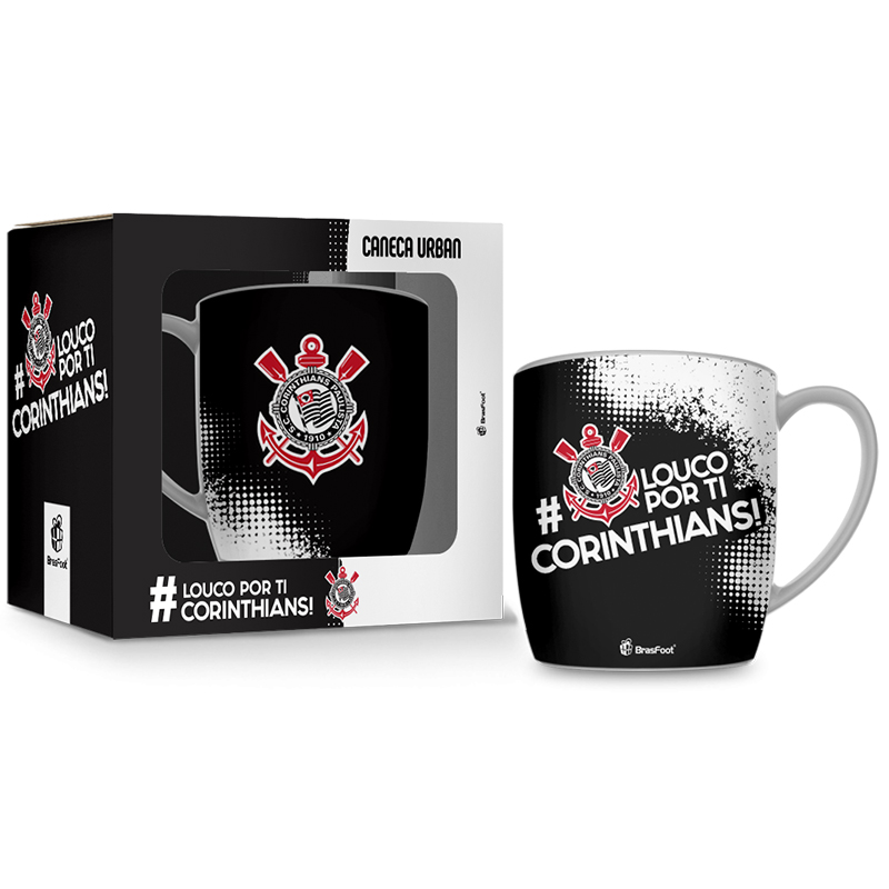 Caneca Porcelana Premium BrasFoot # Louco Por Tí Corinthians 300 ML Urban Licenciada Branco