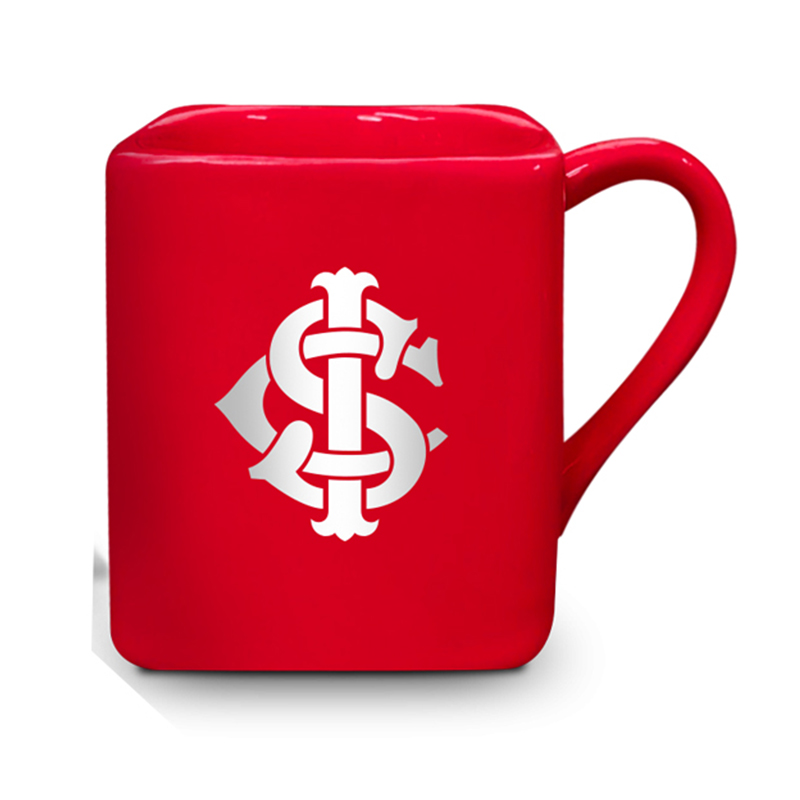 Caneca Porcelana Quadrada BrasFoot Internacional 220 ML Licenciada Vermelho
