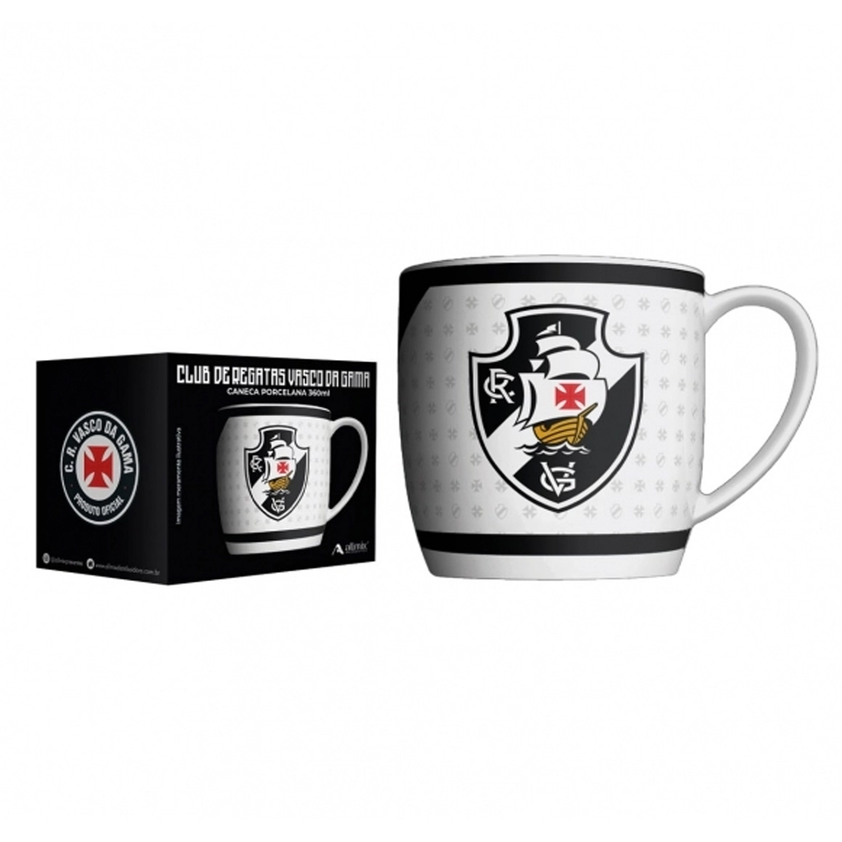 Caneca Urban Porcelana Allmix Brasao Vasco 360 ML Licenciada Branco