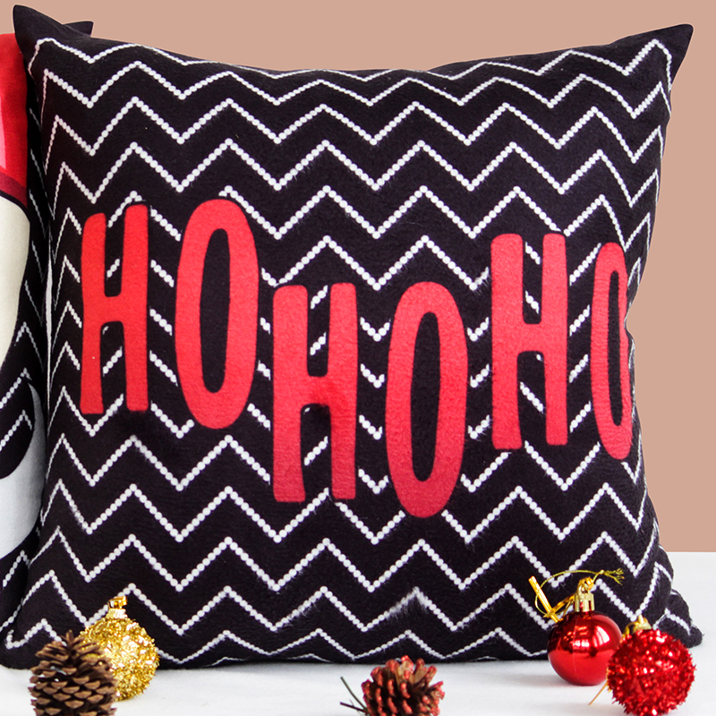 Capa para Almofada KazzaVip Flanela 100% Poliéster Estampada Ho Ho Ho 40x40cm Preto