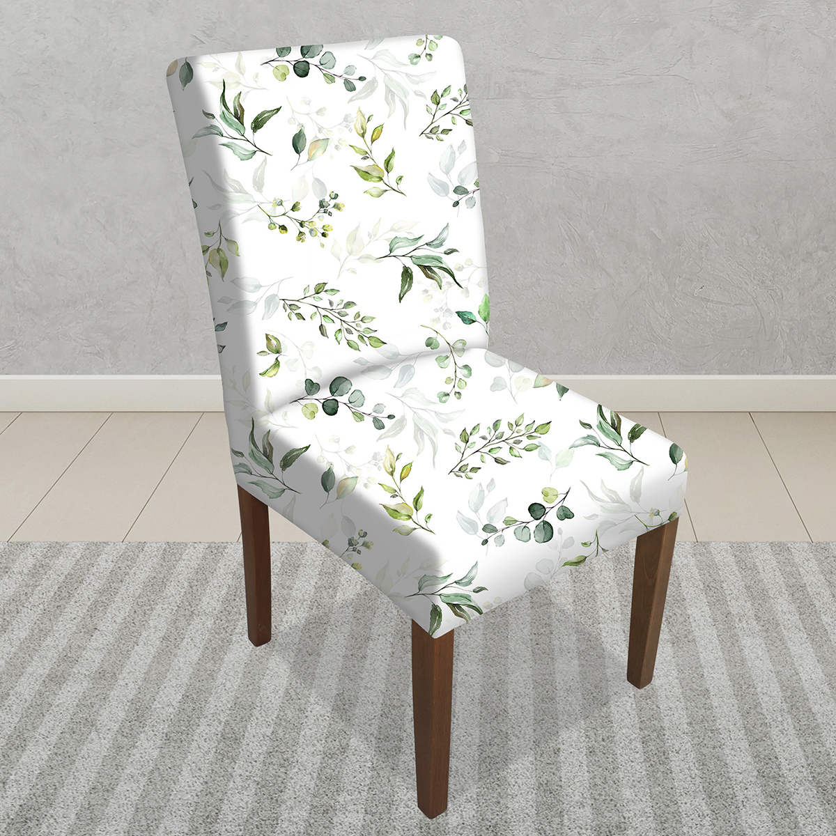 Capa para Cadeira Portallar Estampa Digital Malha 93% Poliéster e 07% Elastano Green Leaves Branca
