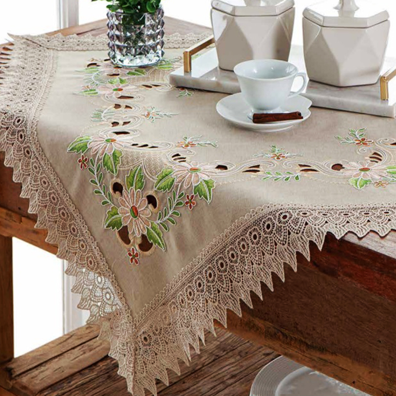 Centro para Mesa Jolitex Bordado e Rendado 100% Poliester Cancun 0,85cmx 0,85m Bege