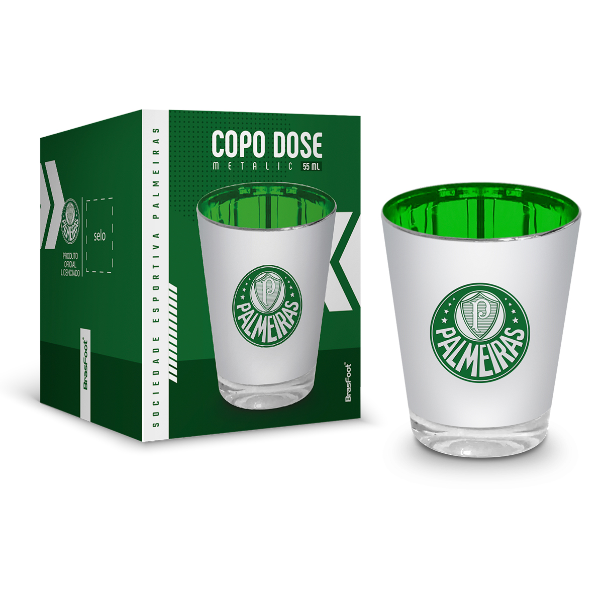Copo Dose BrasFoot Vidro Licenciado Metálic Sociedade Esportiva Palmeiras 55ml Prata