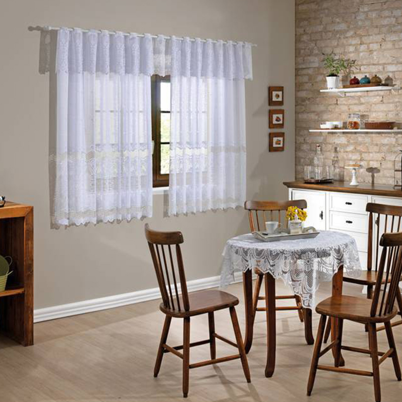 Cortina Interlar de Renda 100% Poliéster Classica para Cozinha Arabesco com Bando 2,20m x 1,20m Branco