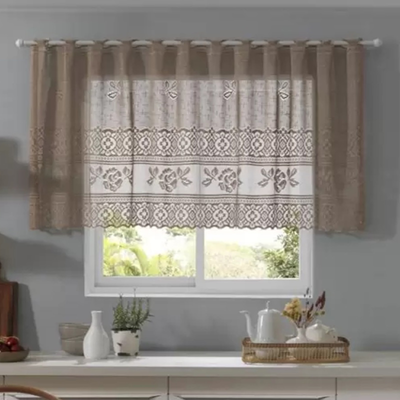 Cortina KazzaVip de Renda 100% Poliéster para Cozinha Valência 80cm x 2,00m Desert