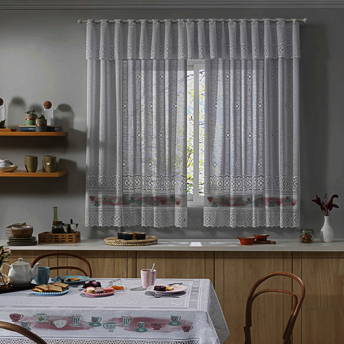 Cortina KazzaVip de Renda sem Forro para Cozinha Valencia Louça Retro 2,00m,x 1,50m Branco