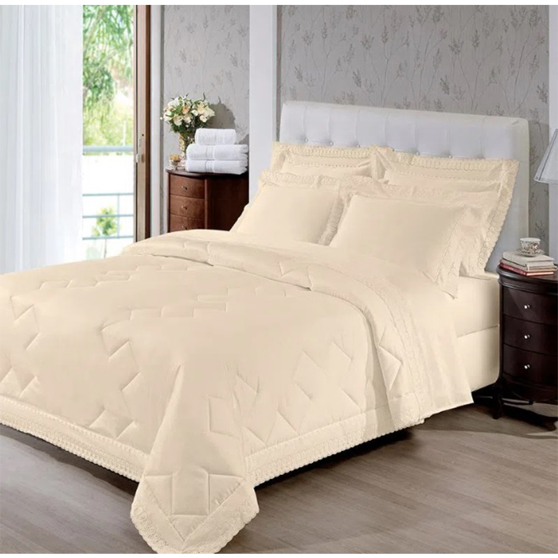 Edredom Buettner Queen Percal 300 Fios c/ Renda Renascença 240x260cm Perola