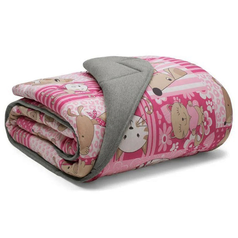 Edredom Buettner Solteiro Malha Basic Estampado Pets Pink 150mx220m Mescla