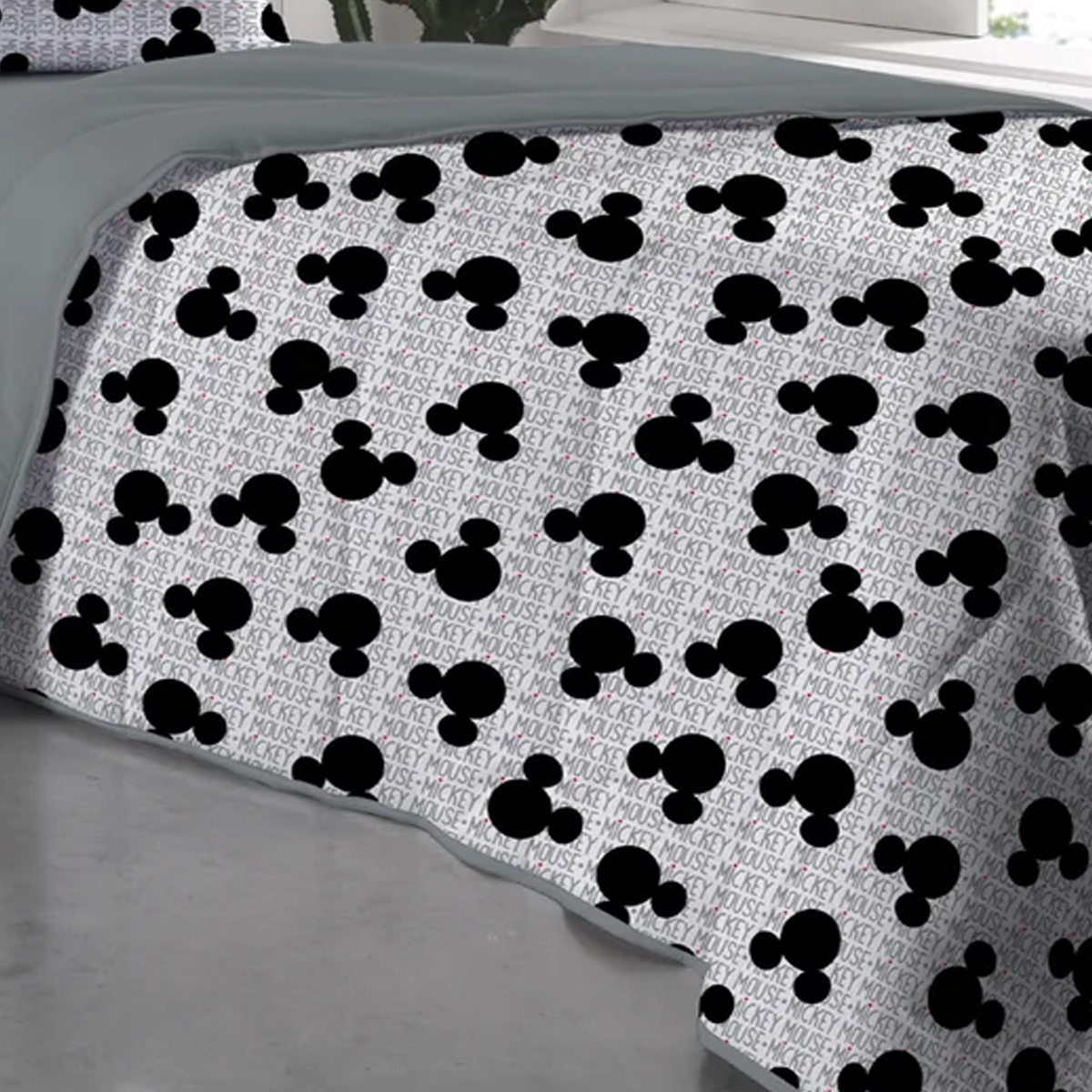Edredom Portallar Casal Malha 100% Algodão Disney Mickey In Love 2,00mx220m Cinza