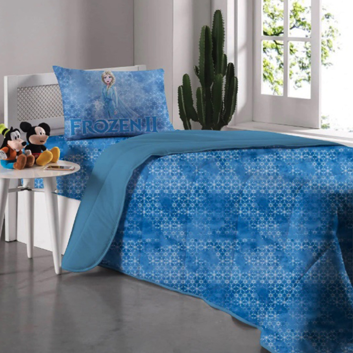 Edredom Portallar Solteiro Malha Disney Frozen Azul 150mx220m Azul Plácido