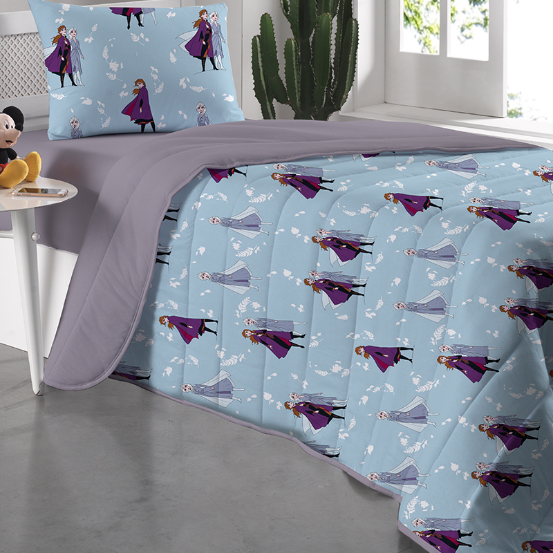 Edredom Portallar Solteiro Malha Disney Frozen Outono Lilás