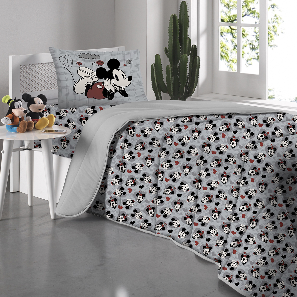 Edredom Portallar Solteiro Malha Mista 70% Algodão e 30% Poliéster Disney Namorados Love Film 1,50mx2,20m Cinza