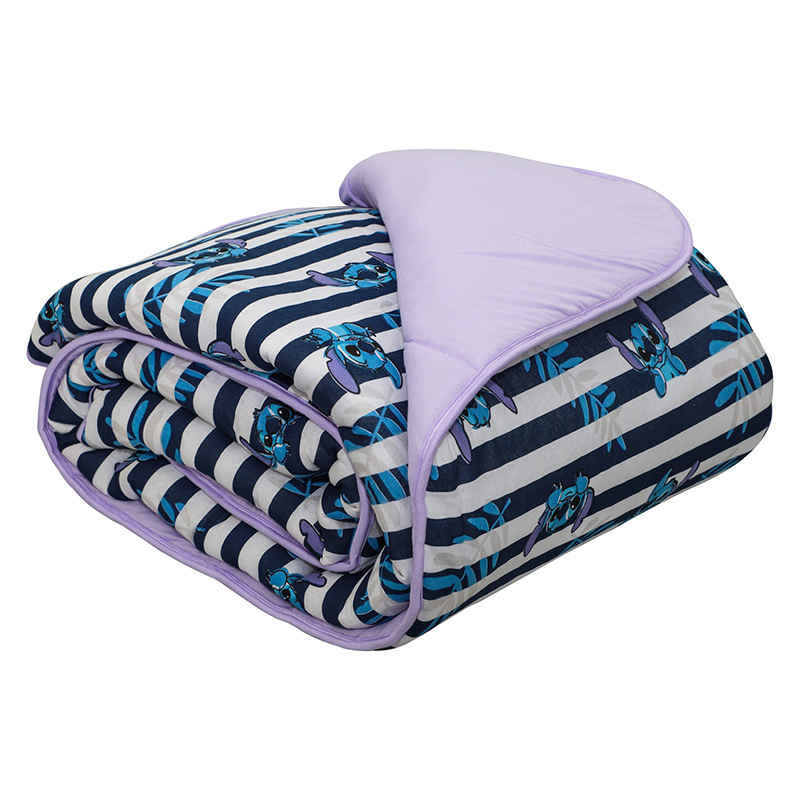 Edredom Portallar Solteiro Malha Misto Disney Stitch Listras150mx220m Lavanda