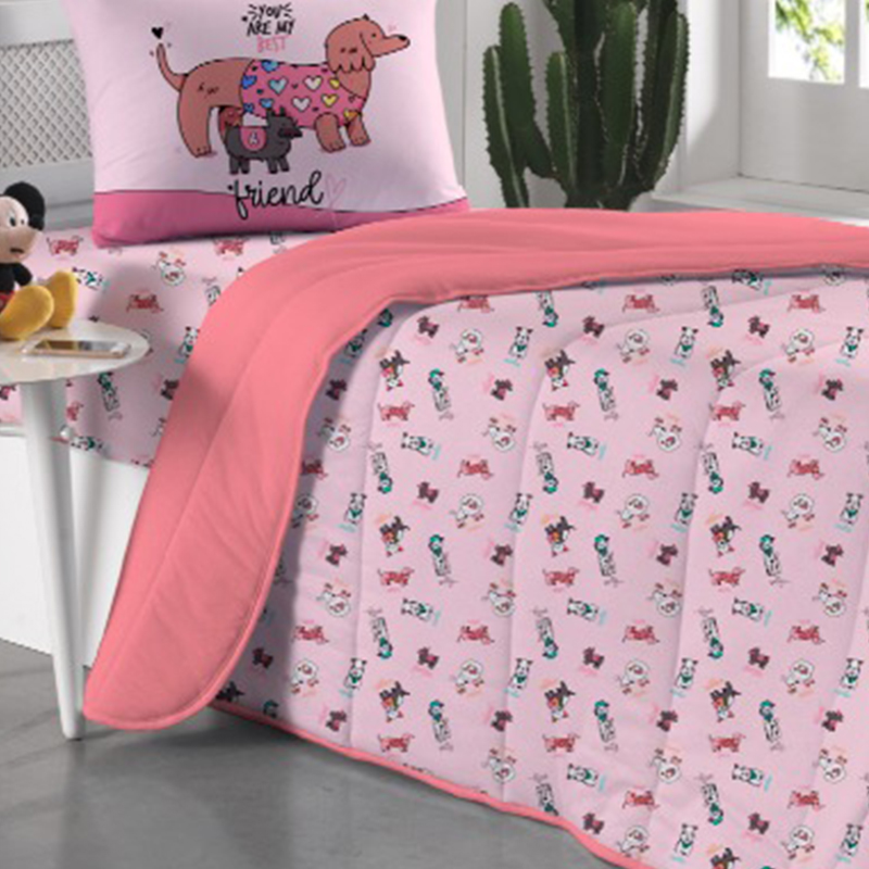 Edredom Solteiro Portallar Estampado Misto Friends Rosa