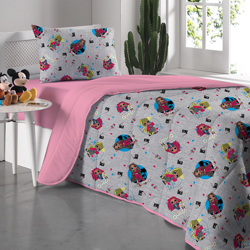 Edredom Solteiro Portallar Malha Misto O.M.G Cinema Rosa Prisma