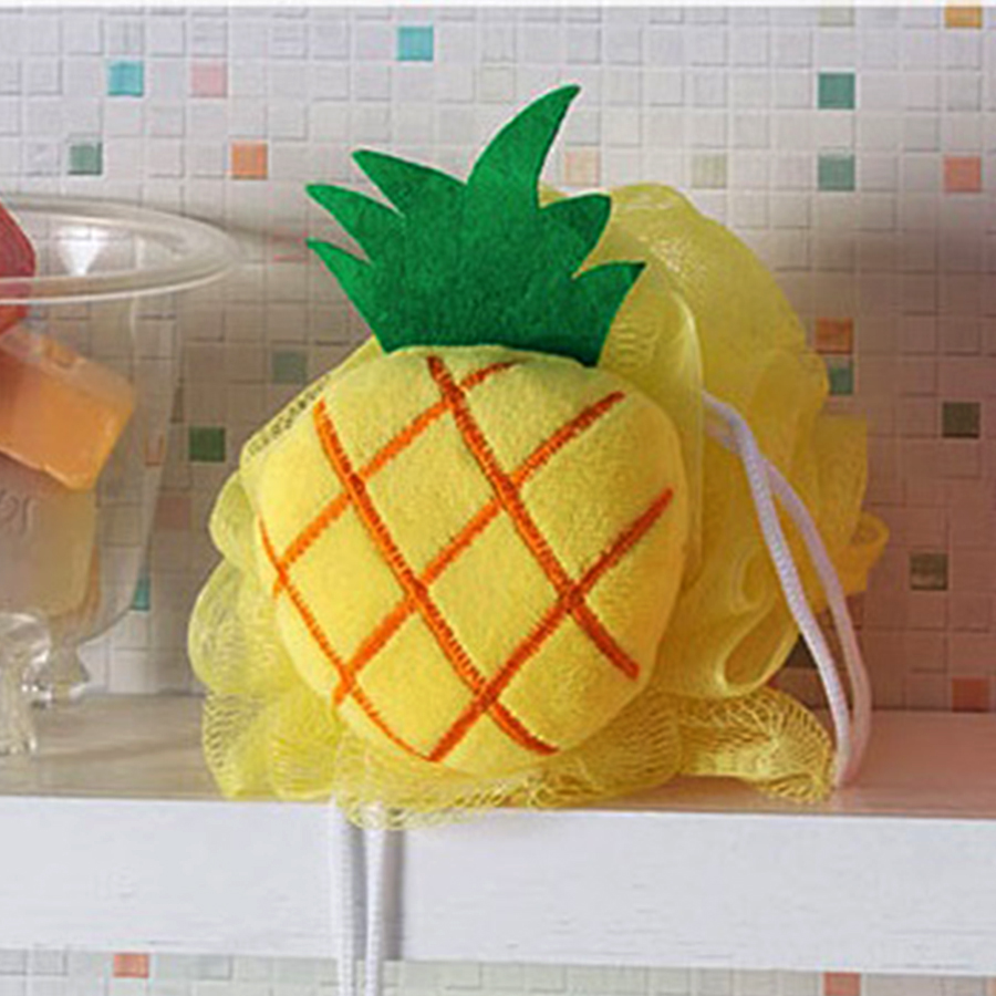 Esponja de Banho Bouton Frutas Abacaxi com Corda 100% Polietileno Nylon Amarelo
