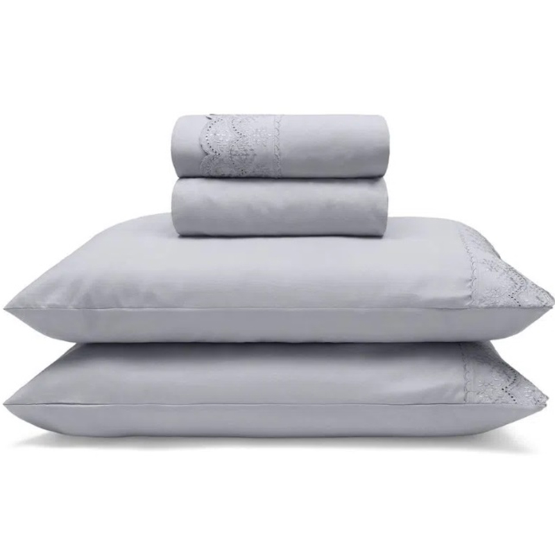 Jogo de Cama Buettner Casal Linha Sonata c/ Renda Amy 4 peças Cinza