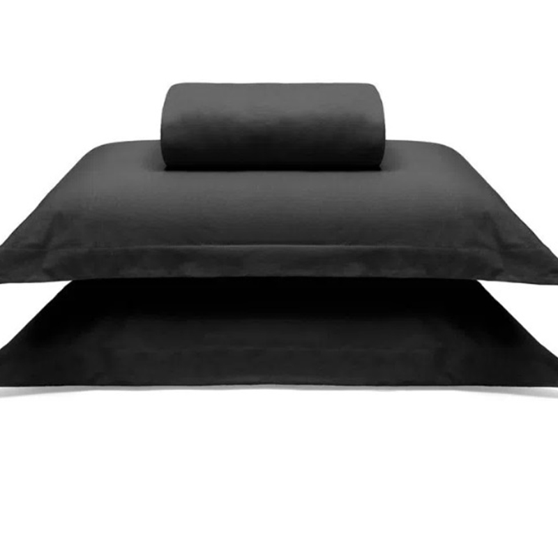 Jogo de Cama Buettner Casal Malha 100% Algodao Liso 3 Peças Image Preto