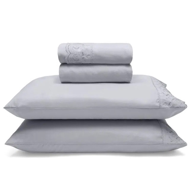 Jogo de Cama Buettner King Linha Sonata c/ Renda Elga 4 peças Cinza