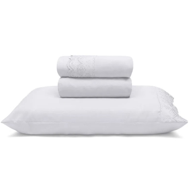 Jogo de Cama Buettner Solteiro Linha Sonata c/ Renda Amy 3 peças Branco