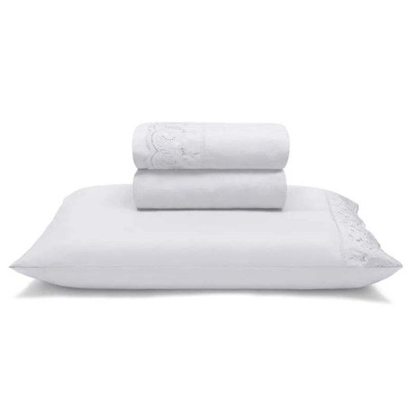 Jogo de Cama Buettner Solteiro Linha Sonata c/ Renda Elga 3 peças Branco
