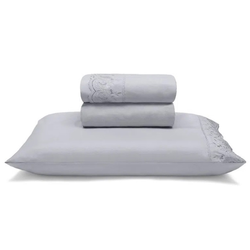 Jogo de Cama Buettner Solteiro Linha Sonata c/ Renda Elga 3 peças Cinza