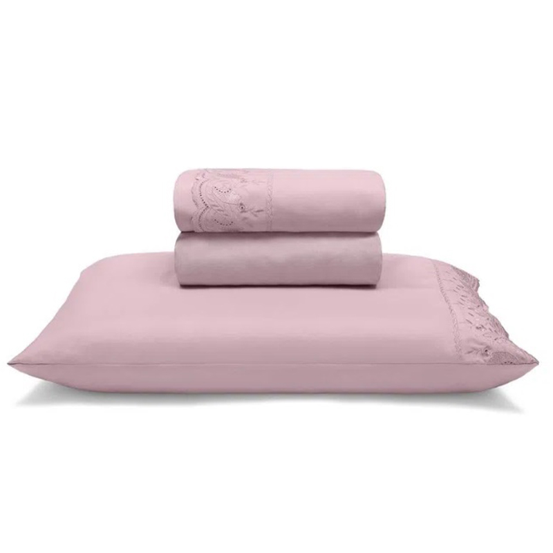 Jogo de Cama Buettner Solteiro Linha Sonata c/ Renda Elga 3 peças Rosa