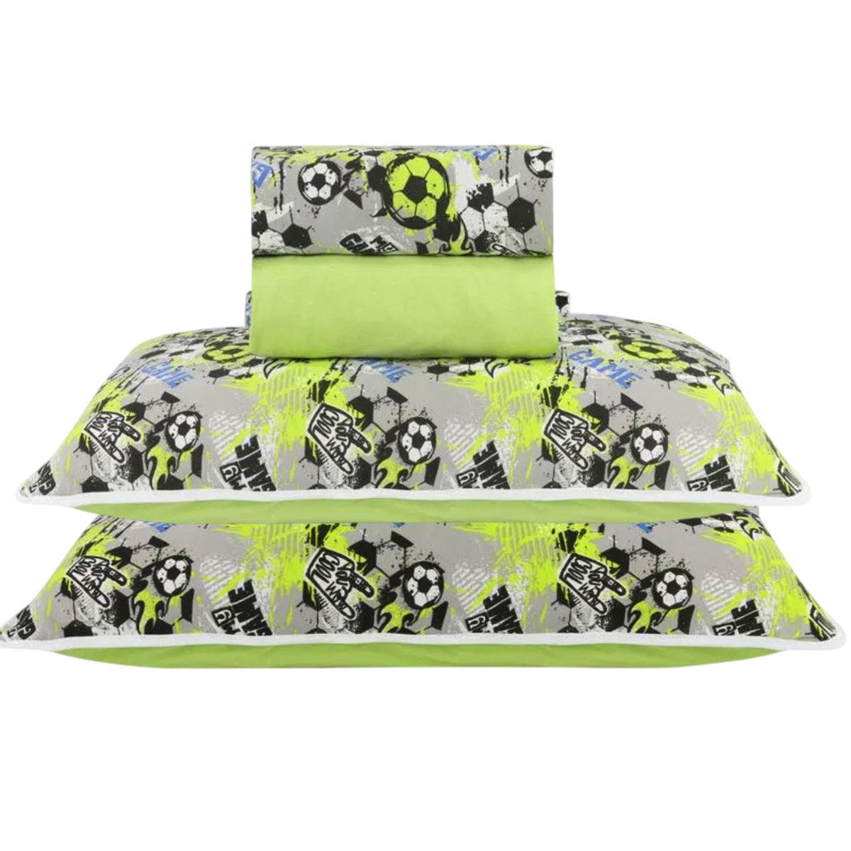Jogo de Cama KazzaVip Casal Malha Estampado 100% Algodão Fun Game 4 peças Kids Verde