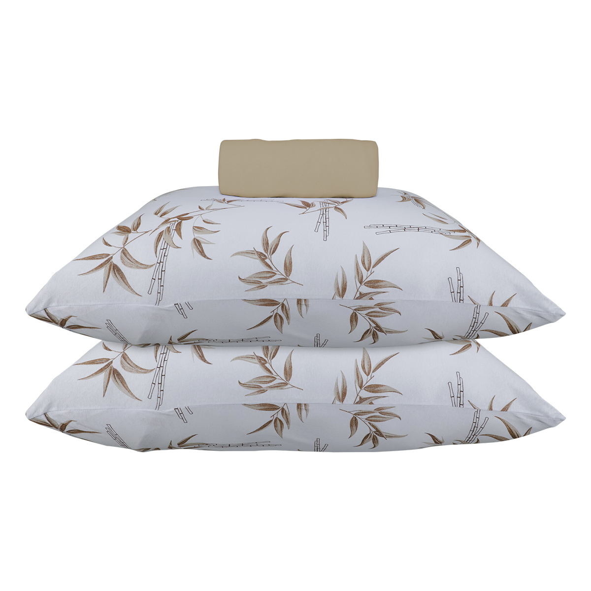 Jogo de Cama KazzaVip King Malha Mista 70% Algodão e 30% Poliéster Rosario 3 Peças Bege