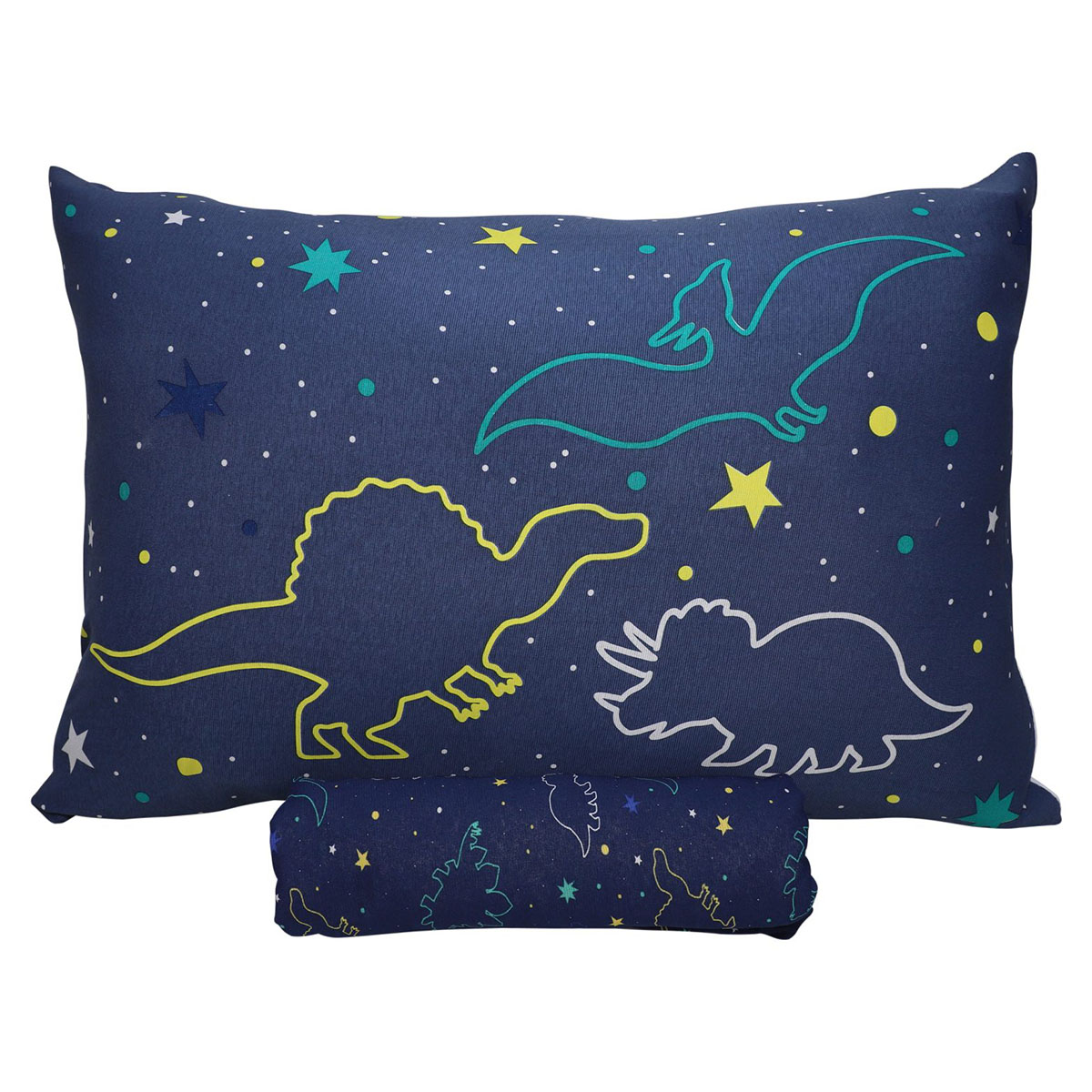 Jogo de Cama KazzaVip Solteiro Malha Mista 70% Algodão e 30% Poliéster Joy Dinossauros 2 peças Azul