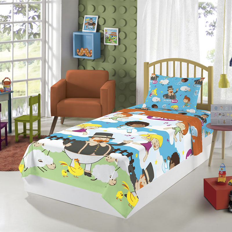 Jogo de Cama Lepper Solteiro Microfibra Estampado Mundo Bita 03 Pçs Branco
