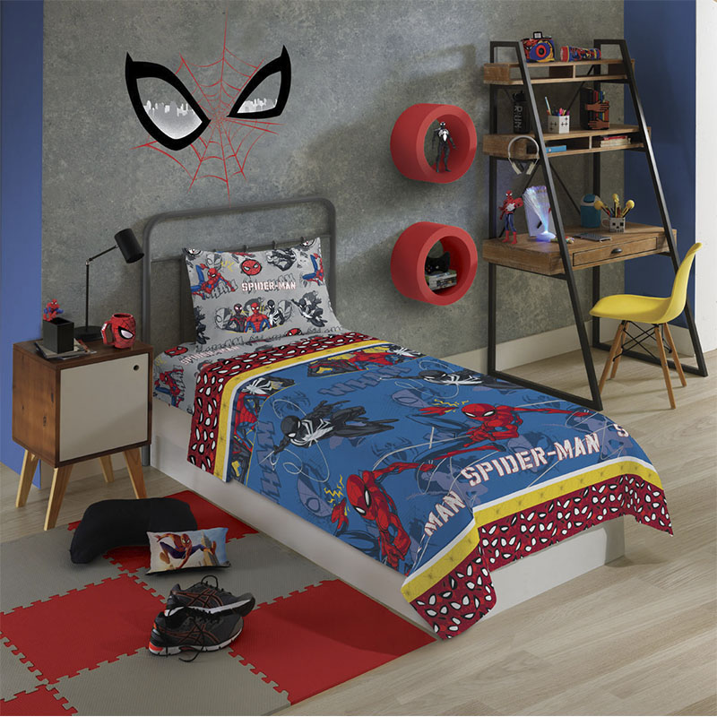 Jogo de Cama Lepper Solteiro Microfibra Estampado Spider Man 03 Pçs Azul