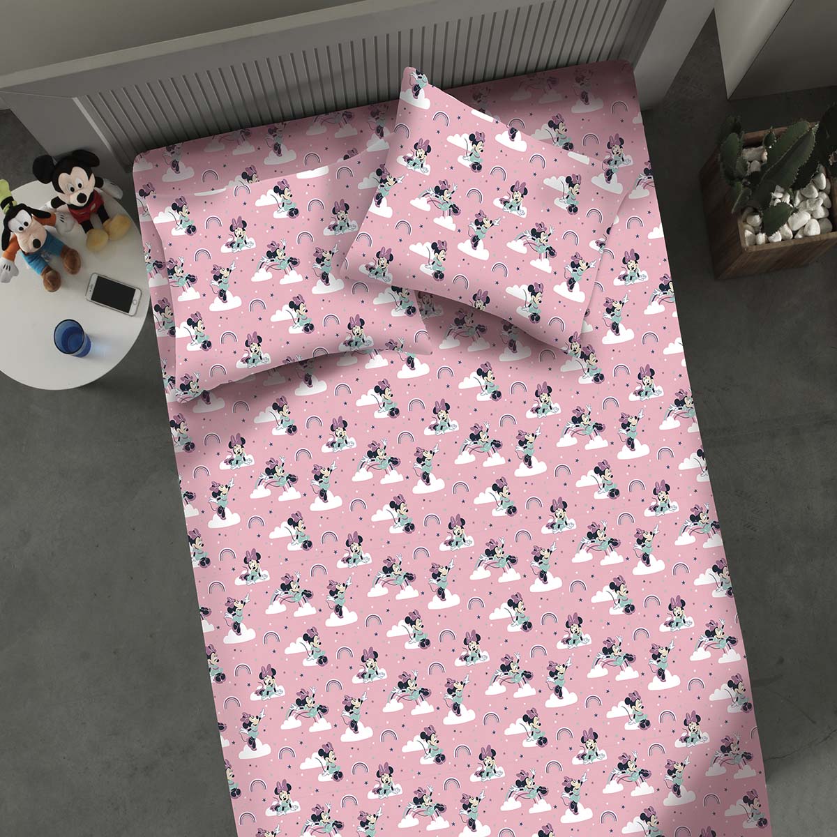 Jogo de Cama Portallar Casal Malha Mista 70% Algodão / 30% Poliéster Estampado Disney Minnie Nuvem 3 Peças Rose