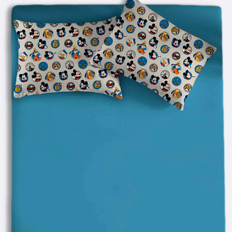 Jogo de Cama Portallar Queen Malha Misto 3 Pçs Amigos Mickey Azul