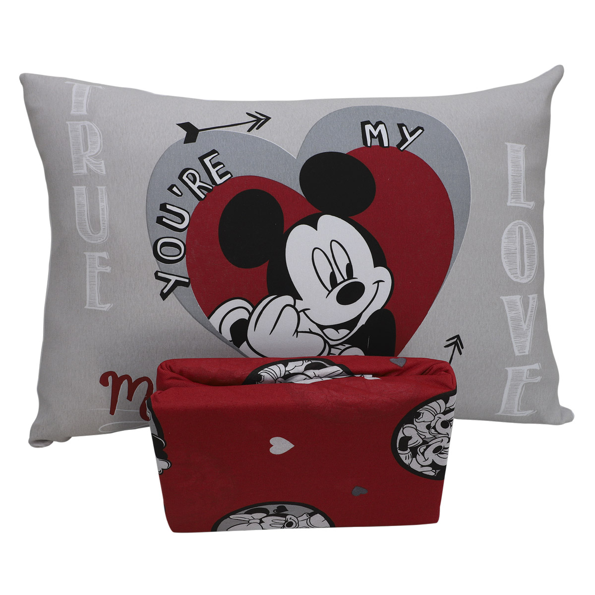 Jogo de Cama Portallar Solteiro Joy Malha Mista 70% Algodão e 30% Poliéster Estampado Disney Mickey Minnie Lovers 2 Peças Vermelho