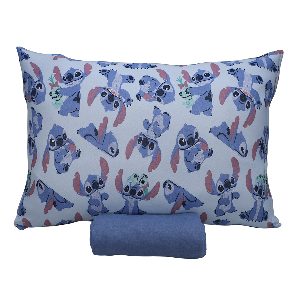 Jogo de Cama Portallar Solteiro Malha 100% Algodâo Disney Stitch E Xepa 2 Pçs Azul