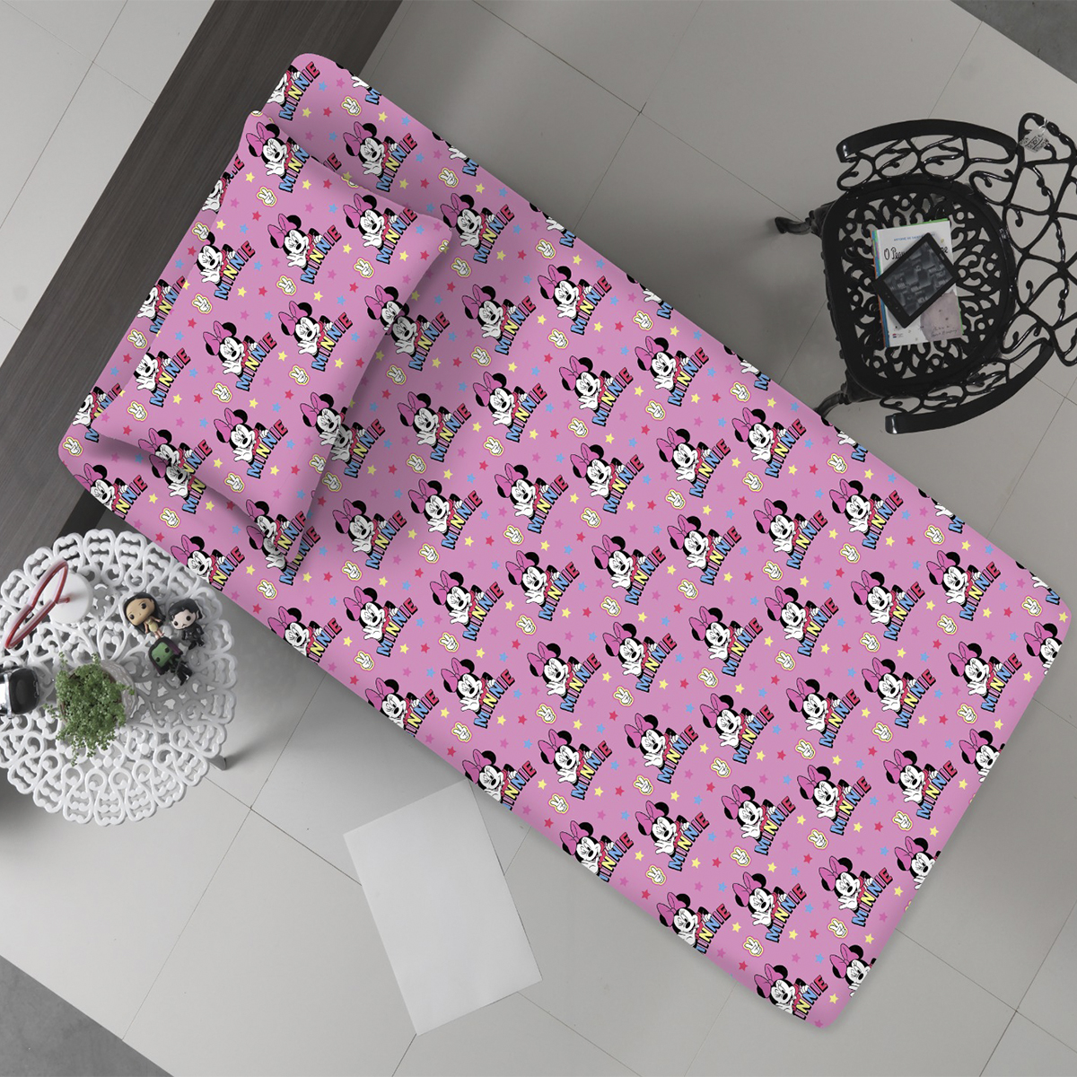 Jogo de Cama Portallar Solteiro Malha Mista 65% Algodão e 35% Poliéster Estampado Disney Minnie Estrela 2 Pçs Rosa