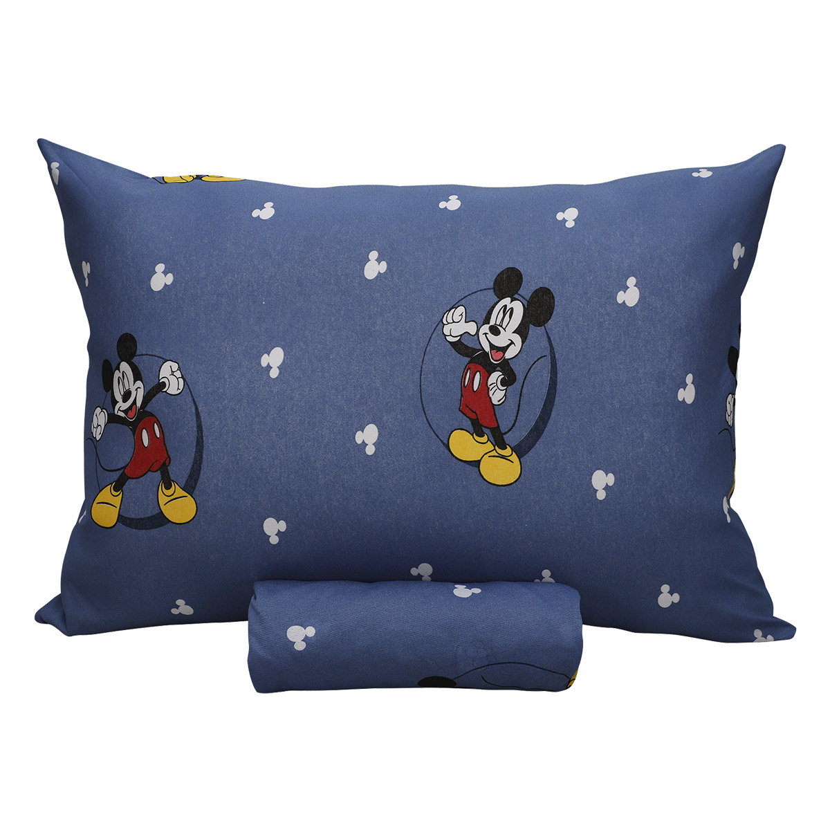 Jogo de Cama Portallar Solteiro Malha Mista Estampado Disney Mickey Circle 2 Pçs Azul