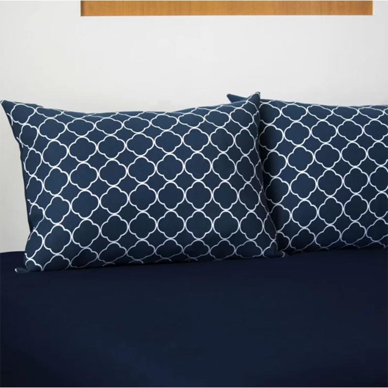 Jogo de Cama Queen Portallar Doce Vida Malha Mista Quadrifolio Marinho 3 Pçs Azul Profundo