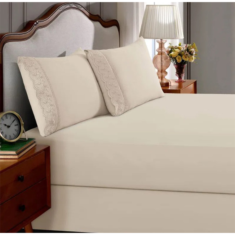 Jogo de Cama Simples Buettner Casal Sonata c/ Renda Elga 3 Pçs Perola