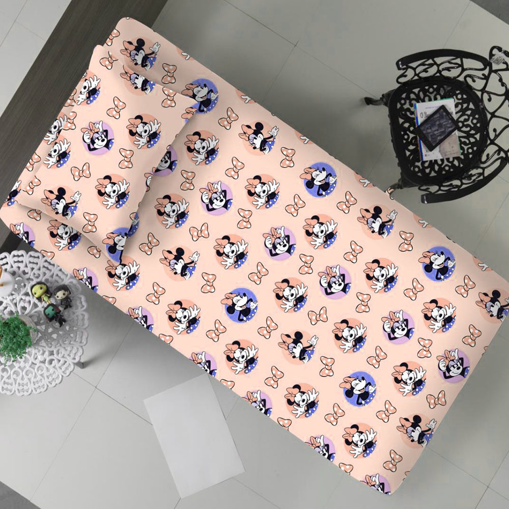 Jogo de Cama Solteiro Portallar Malha Mista Estampado Minnie Lace Com Elástico 2 Peças Salmão