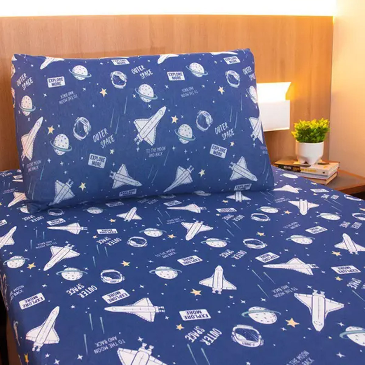 Jogo de Cama Solteiro Portallar Malha Misto Estampado Astroboy Big 2 Pçs com Elástico Azul