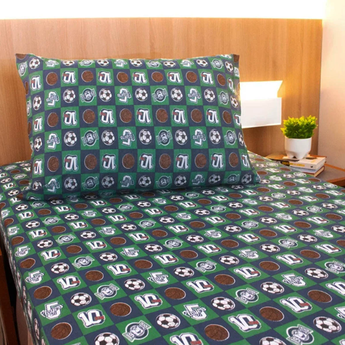 Jogo de Cama Solteiro Portallar Malha Misto Estampado Esportes 2 Pçs com Elástico Verde