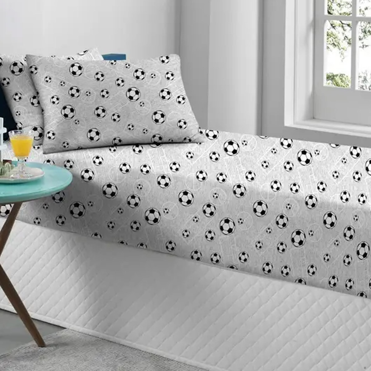 Jogo de Cama Solteiro Portallar Malha Misto Estampado Futebol Gray 2 Pçs com Elástico Cinza